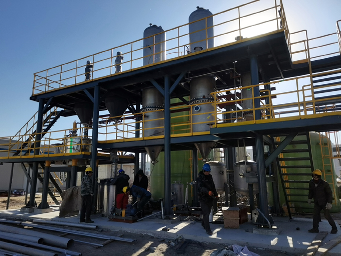 三效蒸發(fā)器主要由相互串聯(lián)的三組蒸發(fā)器、冷凝器、鹽分離器和輔助設(shè)備等組成。三組蒸發(fā)器以串聯(lián)的形式運(yùn)行,...